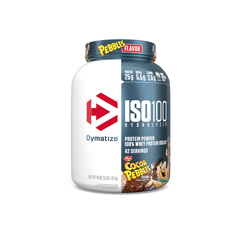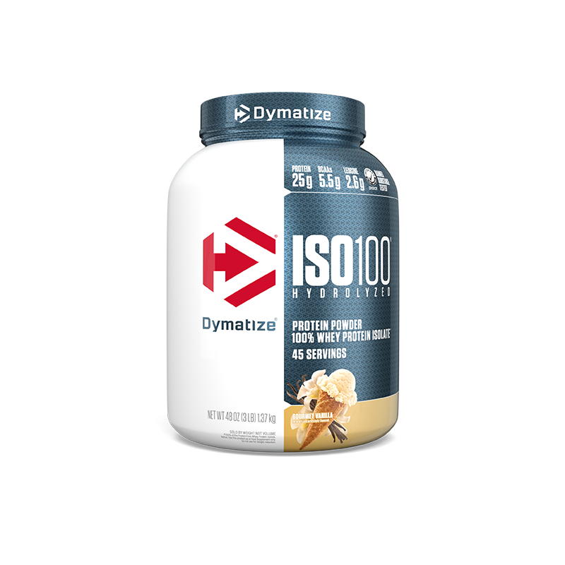 Product Description: Dymatize ISO 100 Protein Isolate is simply muscle-building fuel. Known worldwide for quality, taste, and purity. If your goal is to gain muscle size and strength, then ISO100 Protein is your perfect workout partner. Loaded with muscle-building amino acids, ISO100 Protein can support even the most serious resistance-training programs. Known worldwide for quality, taste, and purity, Dymatize ISO 100 Protein is produced to our highest quality standards. Dymatize ISO 100 Protein is formulated using a cross-flow microfiltration, multi-step purification process that preserves important muscle-building protein fractions while removing excess carbohydrates, fat, lactose, and cholesterol. Dymatize ISO 100 Protein Isolate is made with pre-hydrolyzed protein sources to ensure fast digestion and absorption. One look at the facts panel will tell you that Dymatize ISO 100 Protein has a lot to offer: 25 grams of protein, 5.5 grams of branched-chain amino acids (BCAAs), and 2.7 grams of Leucine per serving Fast digesting and absorbing protein, great before, during, or after workouts Maintaining a positive nitrogen balance, which is critical during periods of intense training.